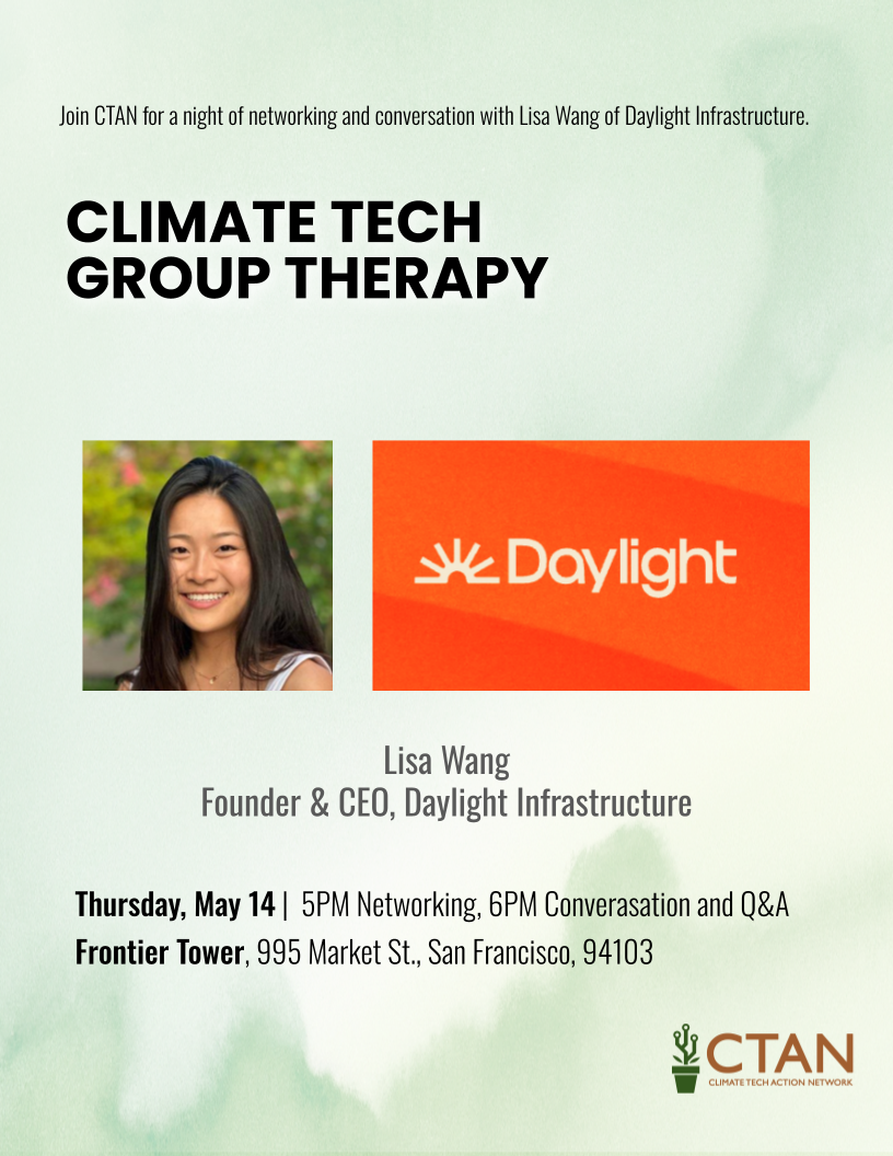 Come network with climate tech professionals, hear from founders about their innovative work, and commiserate about the state of the world! Climate Tech Group Therapy brings together engineers, entrepreneurs, scientists, and investors to network and discuss the hottest climate tech startups.